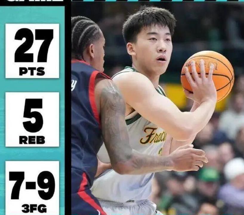 1月11日,NCAA常规赛,旧金山大学以80-60大胜佩珀代因大学,这场比赛中国球员王俊杰首发出场32分钟,投篮14投10中,其中三分球9投7中,拿到27分5篮板的数据。这不仅是王俊杰NCAA生涯单场得分数据新高,同时也是他单场三分球命中数新高,他创造了纪录。本赛季前18场比赛王俊杰场均只有6.1分和3.1个篮板,佩珀代因大学虽然实力一般,但是王俊杰能够爆发并且拿到好的数据,最主要原因还是他自身的努力和实力的体现。