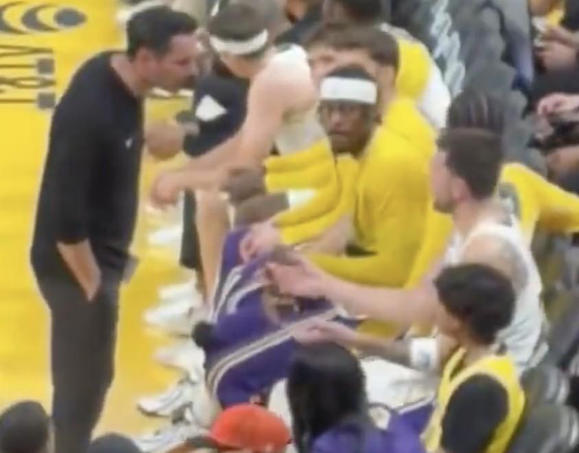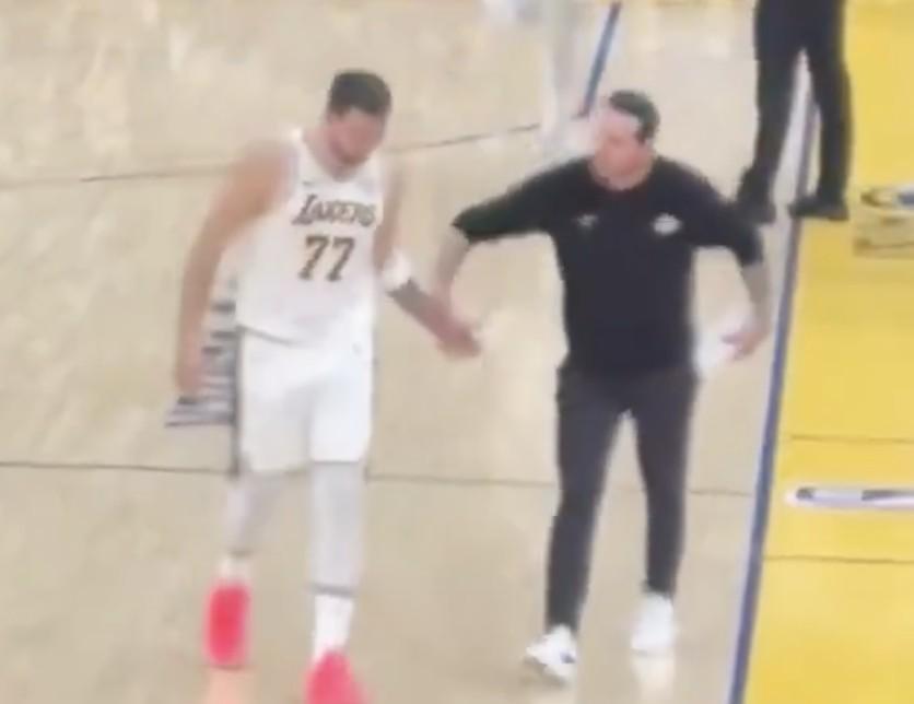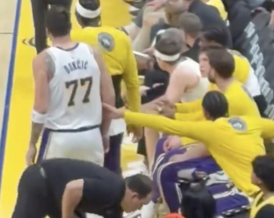 雷迪克交流完走开后,东契奇似乎起身想要追着雷迪克继续说些什么,被范德比尔特一把拦住。